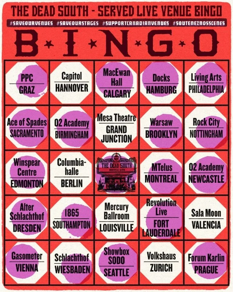 THE DEAD SOUTH ANNOUNCE MUSIC VENUE BINGO FUNDRAISER FOR LIVE MUSIC RELIEF CAMPAIGNS